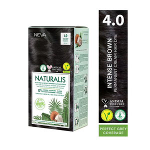 NEVA Naturalis Permanent Hair Dye Set, Vegan,100% Gray Coverage, Organic, No Harmful Chemicals, GMO-Free, Long-Lasting Shine - INTENSE BROWN - 4.0