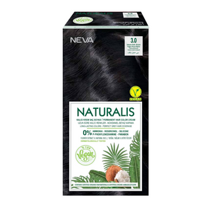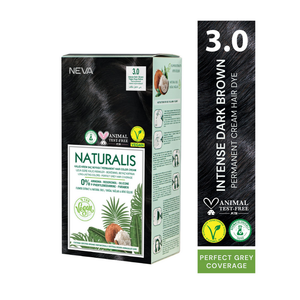 NEVA Naturalis Permanent Hair Dye Set, Vegan,100% Gray Coverage, Organic, No Harmful Chemicals, GMO-Free, Long-Lasting Shine, Intense Dark Brown 3.0