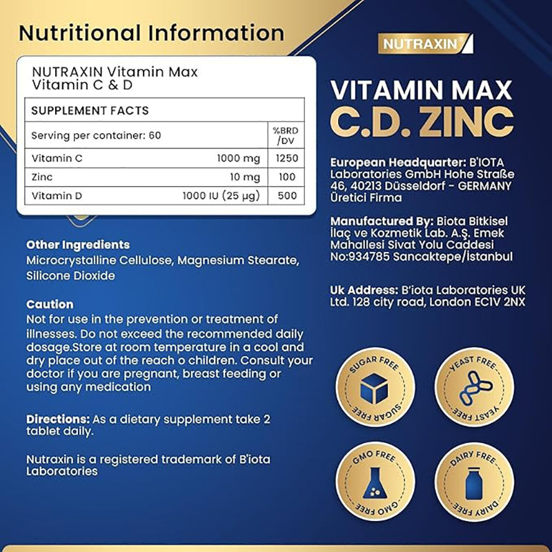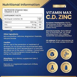 Nutraxin Vitals Vitamin Max C+D+Zinc 60 Tabs