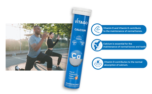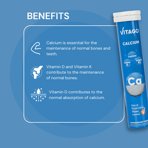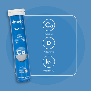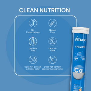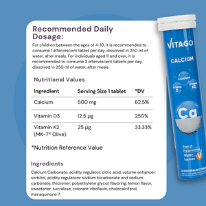 Vitago Calcium Effervescent Tablet, Vitamin D3, K2, High Absorption Calcium, Strong Bones and Teeth - 20 Tablets