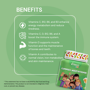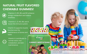 Vitago Kids Multivitamin Gummies, Supports Immunity, Energy, and Healthy Growth, Essential Vitamins & Minerals, Natural Fruit Flavor - 60 Gummies