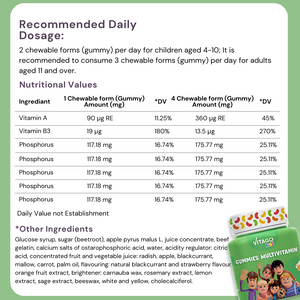 - Chewable and Delicious: Naturally fruit-flavored gummies that kids love, making it easy for parents to ensure their children take their daily vitamins.
