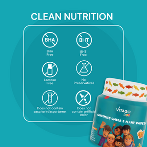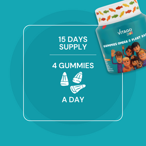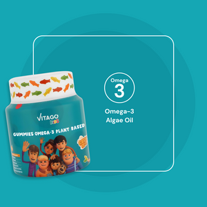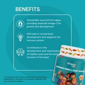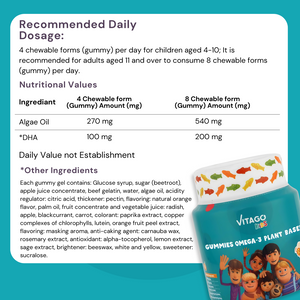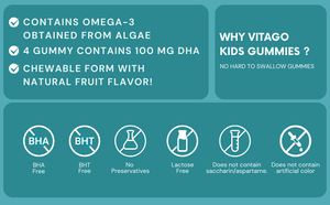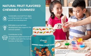 Vitago Kids Omega-3 Gummies, Plant-Based DHA, Supports Brain, Eye & Heart Health, Natural Fruit Flavor - 60 Gummies