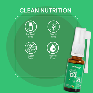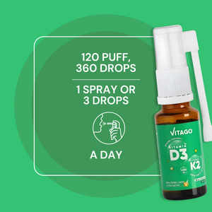 Vitago Plant-Based D3 Spray with K2-1000 IU - 20ml, Drops/Spray, High Bioavailability, Supports Bone & Immune Health
